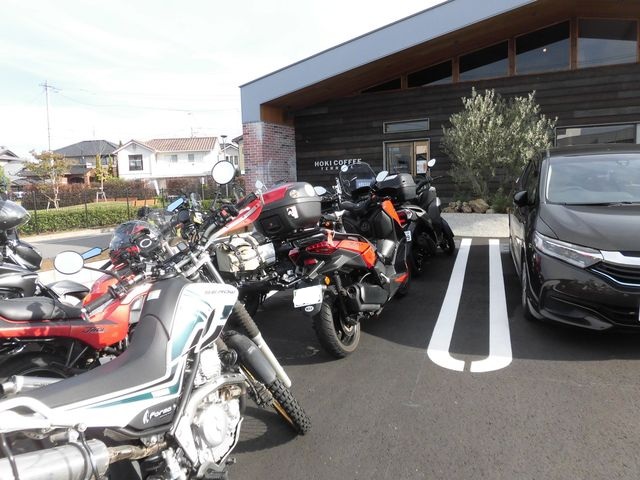 11/02モーニングはみよし市の帆季珈琲テラス三好店へ。市内ほかに何店かあるカフェチェーンでまだ出来立ての新しいショップでした。コーヒーやモーニング内容にもこだわりのある良いお店でした。カフェを出て153をトヨタのほうへ進みます。豊田市内を抜けて301を走っていくと緑が増えて快走路になっていきます。山に入っていくと徐々に寒さが増してくる感じでした。途中、道の駅つくで手作り村にて小休止。久々の晴天のせいか驚くほどのバイクがおりました。301より151に入り大野宿の鳳来館に無事到着。ここも相当混んでいて博物館のような店内で長いこと時間をつぶしおいしいランチにありつきました。帰りは301から寄り道をしておいしいお餅で有名なちょうじや屋にて一服して帰宅となりました。お疲れさまでした。